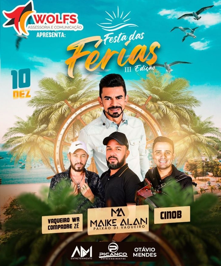 A Wolfs Assessoria de Comunicação apresenta a III Edição da Festa das Férias de Dom Inocêncio-PI dia 10 de dezembro.